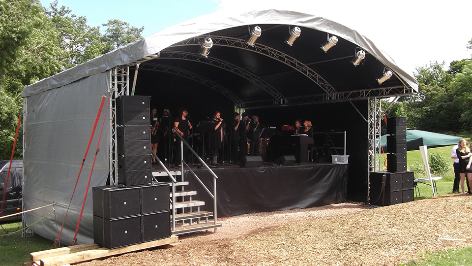 The steps can be positioned either to the left, right or both sides of the stage. You will have one front valance and extra valances to cover the back and sides of the stage. Included with this stage are back and side walls, however you have the option to remove these if you wish. We can also add a loading ramp if required.